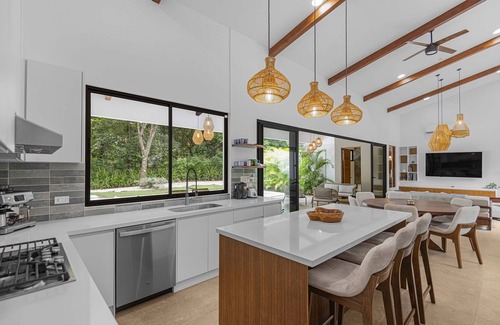 Beautiful home with 3 bedrooms all with ensuite bathrooms providing privacy to all guests. Open concept design looking into the jungle and private pool. The outdoors & indoors merge throughout the space. The exterior provides a relaxing space to enjoy the pool during the day and at night sitting space with fire pit. There is a Sauna and weights to make your stay here feel like a spa retreat.